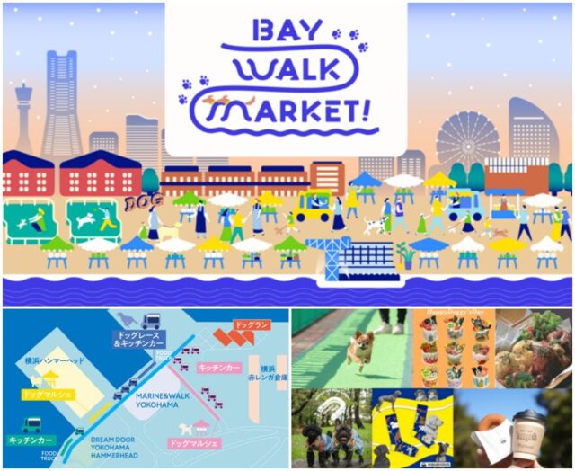 横浜赤レンガ倉庫、MARINE & WALK YOKOHAMA、横浜ハンマーヘッド、DREAM DOOR YOKOHAMA HAMMERHEADを結ぶ海沿いの会場で開催され、散歩しながら各エリアを巡れる内容です。会場ではドッグ関連のマーケットに加えて、キッチンカーやアートフォトスポット、ドッグタイムレースなどの企画も行われます。
